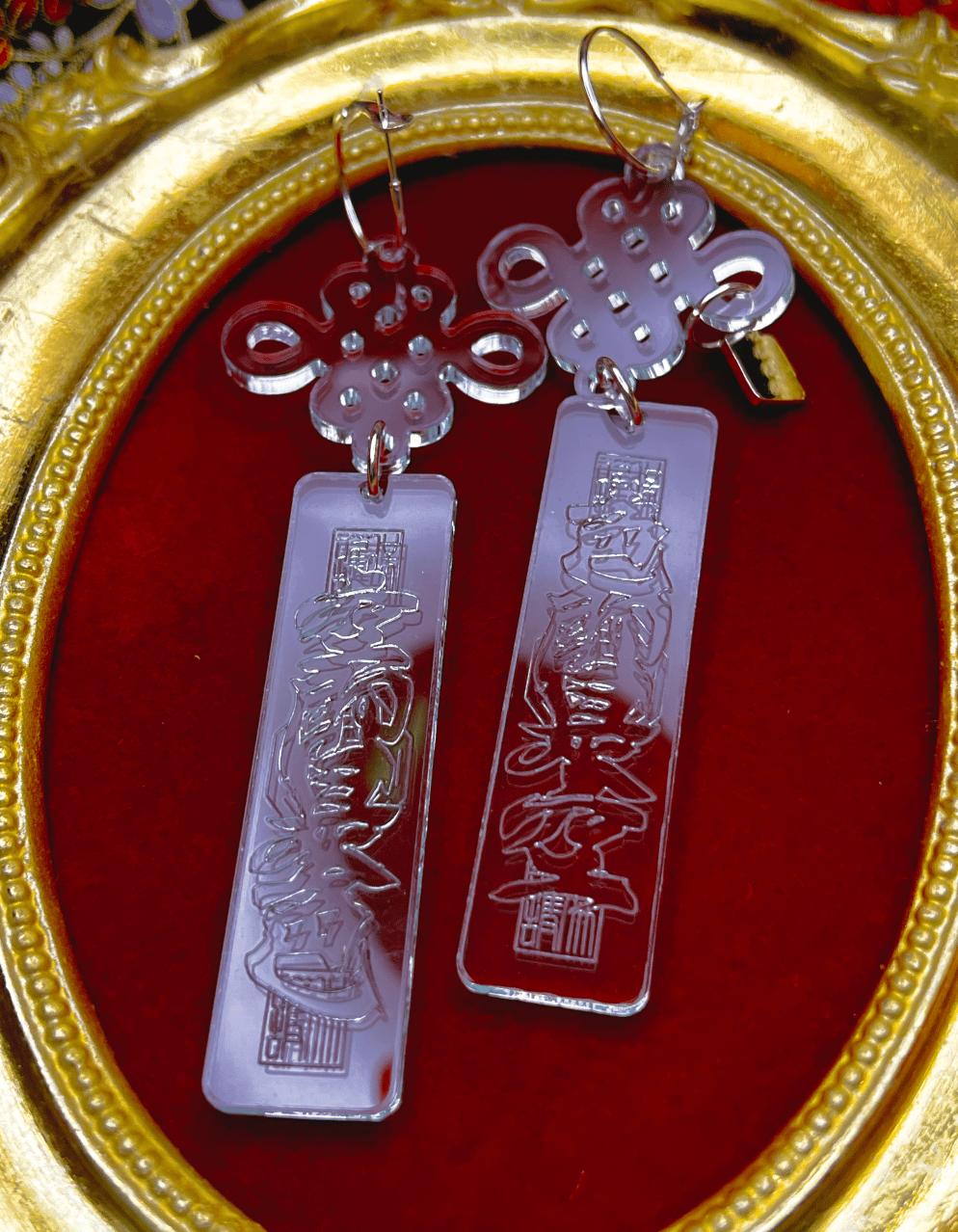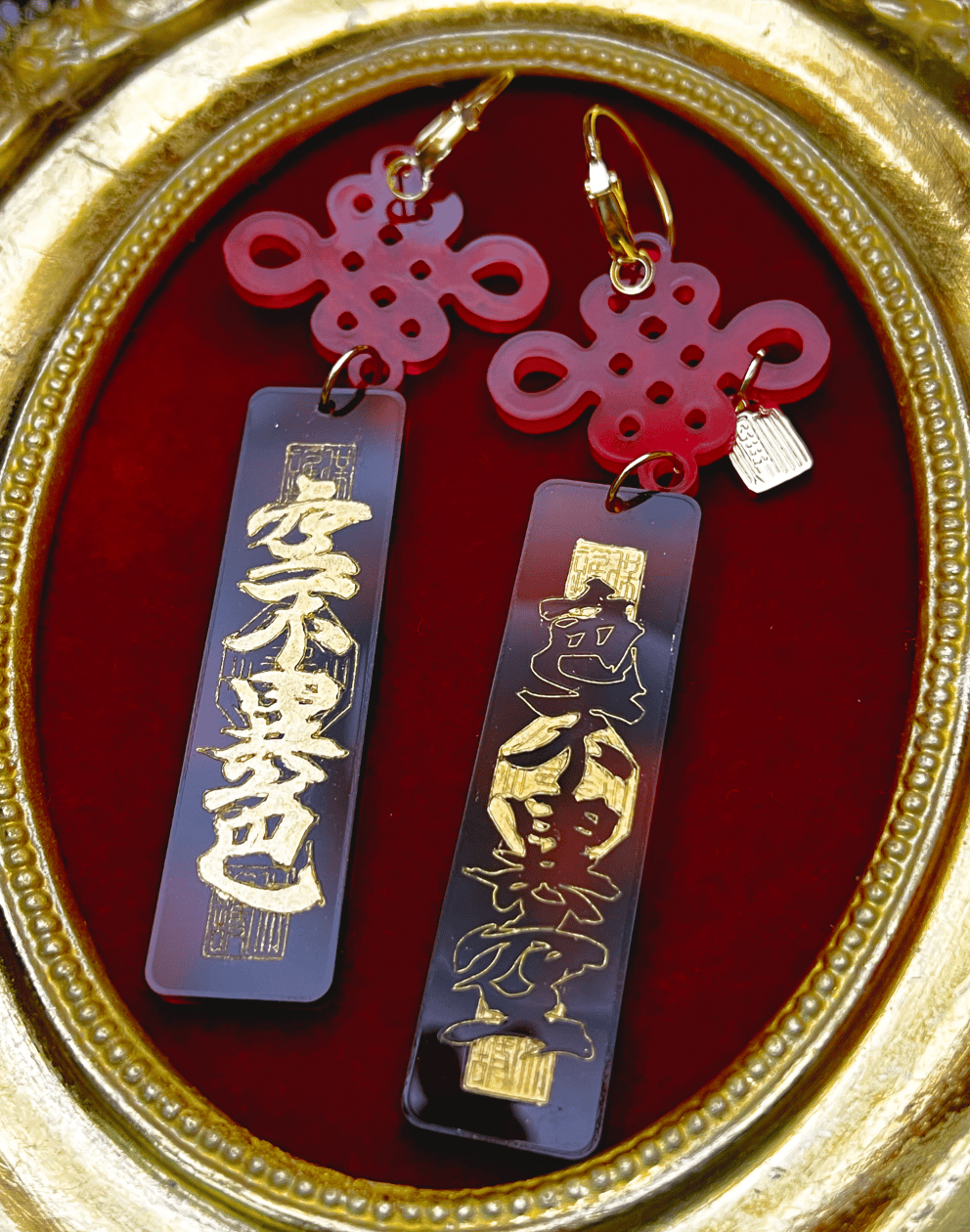 Hand-painted acrylic earrings. Tortoise are painted with gold paint, Lapis are painted with Silver paint. These earrings are sold ONLY BY THE PAIR. Each earring is approximately 5 inches long.